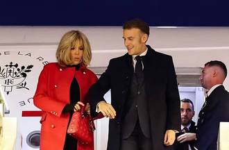 72岁布里吉特真洋气,红大衣配高跟鞋美翻了,挽着马克龙胳膊好甜