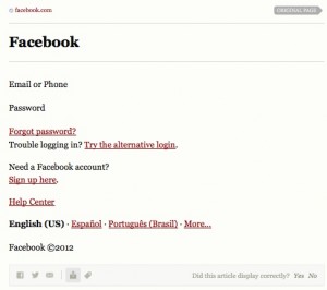 The “readability” result is interesting, since it is not able to identify the main text on the page. It is actually aware of this problem and brings a warning before displaying this page:
