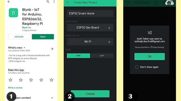 3. Blynk will send an authentication token to the registered email id. Tap on OK.