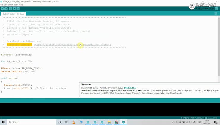 - Install the IRremote library...