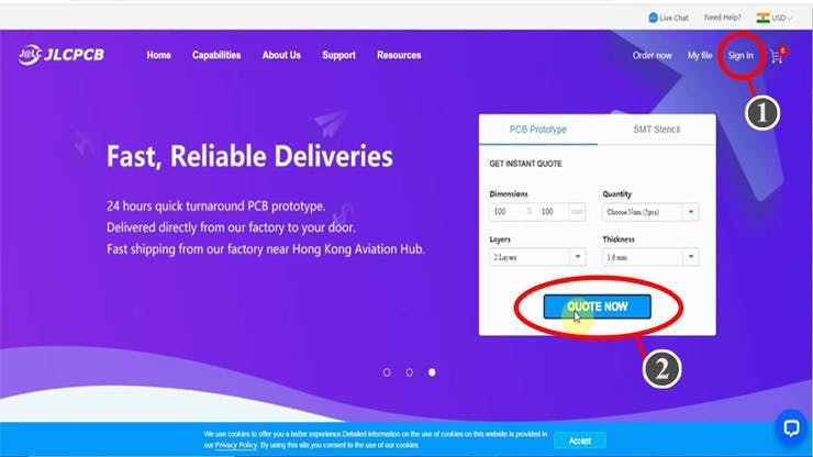 1. Visit https://jlcpcb.com/RHS and Sign in / Sign up