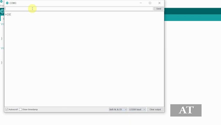 In Serial monitor select the Baud rate = 115200 and "Both NL & CR".
