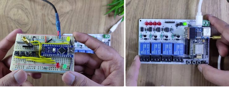 Now you can control the appliances with the transmitter LoRa circuit and also monitor the real-time feedback from the receiver LoRa circuit.