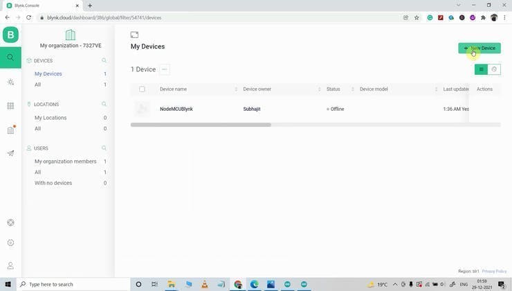 Steps to add a device in the Blynk IoT cloud: