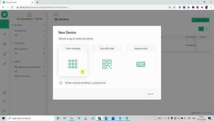 Add Device Using Template in Blynk IoT