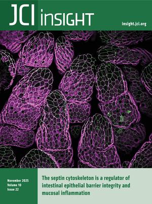 Naydenov et al. report that the septin cytoskeleton localizes to apical junctions of intestinal epithelial cells and maintains barrier integrity, thus protecting the intestinal epithelium from inflammation. The cover image shows the surface of the ileum where SEPT9 is expressed.
