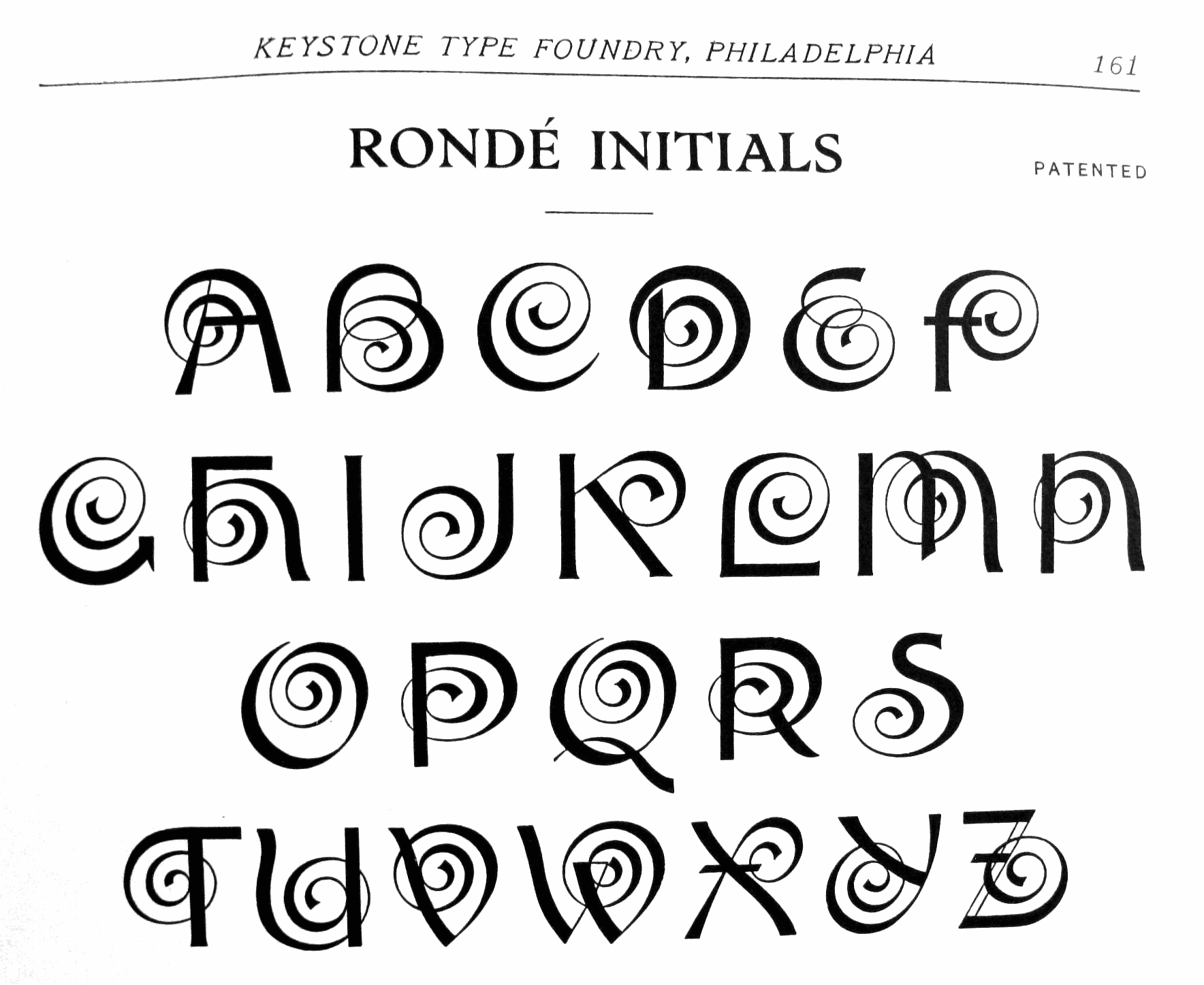 Typefaces: Admiral, Ayer (Mac McGrew: Ayer was introduced by Keystone Type Foundry in 1909, which said it was "named for F. Wayland Ayer, founder of Keystone Type Foundry and the great advertising agency which bears his name." The non-kerning italic was added in 1910.), Ben Franklin, Ben Franklin Condensed, Ben Franklin Open, Bulletin, Caslon Adbold, Caslon Adbold Extended, Caslon Adbold Extra Condensed, Caslon Bold, Caslon Bold Condensed, Caslon Bold Extended, Caslon Bold Italic, Caslon Lightface, Caslon Lightface Condensed, Caslon Lightface Italic, Caslon Title Extended, Charcoal, Charter Oak (1899), Compressed Gothic, Condensed Lining Gothic, Crayonette, Elite Typewriter, Gothic Condensed No. 3, Gothic No. 102, Gothic No. 114, Harris Italic (1910), Harris Roman (1909), Herculean Gothic, Italia Condensed (1906), John Alden Decorative Initials (1906), John Hancock, John Hancock Condensed, John Hancock Extended, John Hancock Outline, Keystone Gothic, Laureate (1906: revived in 2012 by Isabel Urbina), Lining Antique [Keystone], London Gothic (1910 or earlier), New Model Remington Typewriter, Outline, Outline Condensed, Remington, Remington Typewriter, Round Gothic (1884), Skeleton Lining Gothic, Skeleton Lining Gothic No. 19, Smith Premier, Title Gothic [Title Gothic No. 9, Condensed Title Gothic No. 11], Venezia, Washington Text (1902, blackletter), Washington Text Shaded. Digital pictures I took from the Specimen Book of Type (1903): Bulletin, Keystone Bikes, Boldface Cellini, Crayonette Open, Keystone Cyclers, Encore, Lining Antique, Lining Gothic, Outing Initials, Remington Typewriter, Remus, Ronde Initials, Salem (a wedge serif revived in 2021 by Latinotype as Osbourne), Venezia, Victoria Italic, Worcester. Catalog A-C, Catalog C-P, Catalog P-Z. Digitizations: