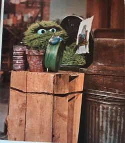 SCENE 2 | Big Bird, wearing a straw hat, has decided to take up farming. He shows Molly the empty milk carton he has, which will be full once he gets milk from a cow. Molly explains to him that the few grass blades growing between the weeds in his garden will not be enough to feed a cow. He decides instead to grow vegetables, but his small flower pot can't accommodate things like a cornstalk. He resolves that a farmer isn't the job for him, not only because he doesn't know how to properly farm, but he also gets to enjoy the tasty corn seeds. |