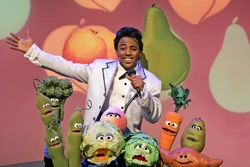 SCENE, cont'd | Miles sings "Broccoli is Good" (parodying "Johnny B. Goode"), with some vegetables and some kids (including Tyrel Jackson Williams). |
