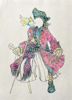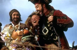 - Long John Silver gives his crewmates stage directions during the "Professional Pirate" number, saying "Upstage, lads, this is my only number" as they carry him across the camp.