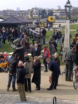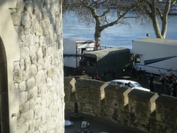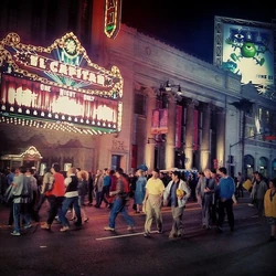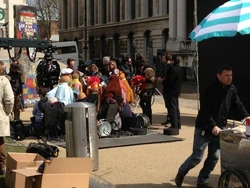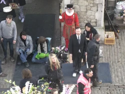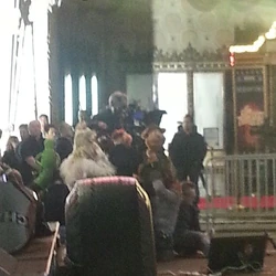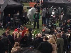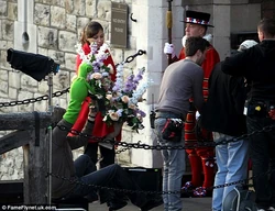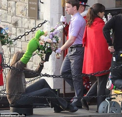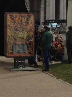 In February 2013, production designer Eve Stewart let slip that she was working on a scene featuring Miss Piggy's wedding at the Tower of London.[22] In addition to the United Kingdom, filming also took place outside the El Capitan Theatre on Hollywood Boulevard in Los Angeles, to recreate the previous film's ending.[23]