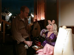 - The fourth wall is broken in the scene where everyone is at Cape Doom waiting for the spaceship and Joshua Jackson and Katie Holmes (uncredited but apparently playing their characters from Dawson's Creek) are standing with Pepe and Clifford. "Joey" says "It's too bad Dawson isn't here for this," and "Pacey" says "The whole thing is like something out of one of his sci-fi movies." Pepe proclaims, "But this is a Muppet movie! It's much more realistic and... romantic, okay."