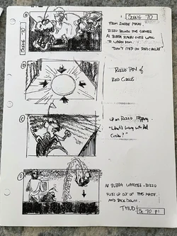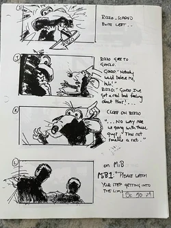 Jerry Juhl wrote an initial draft on the script, which was later handed off to Joey Mazzarino to take a pass at. At this point, Randal Kleiser (director of Grease) was attached to direct the film.[1] Mazzarino later recalled his script draft and the eventual changes brought on afterwards: