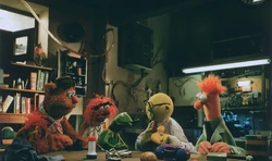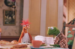 - During the breakfast scene, Kermit reads the "Hensonville News Observer."