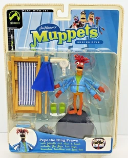 Pepe the King Prawn was featured in the fifth series of Palisades Toys' line of Muppet action figures.