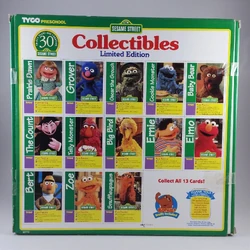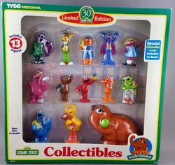 Tyco made a series of 12 collectible Sesame Street PVC figures (labeled as Sesame Street Collectibles) in 1998. Each figure was available separately or in packs of three, and, much like the concurrently-released Sesame Street Beans, came with a card featuring three facts about the character.