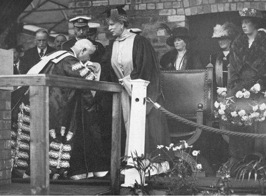 On 6 July 1920, King George V laid the foundation of the Joseph Black Building. In his speech he referred to "a world devastated by the ravages of war" and and declared that "we pin our faith upon the possibilities emerging from the progressive application of science to the service of man".