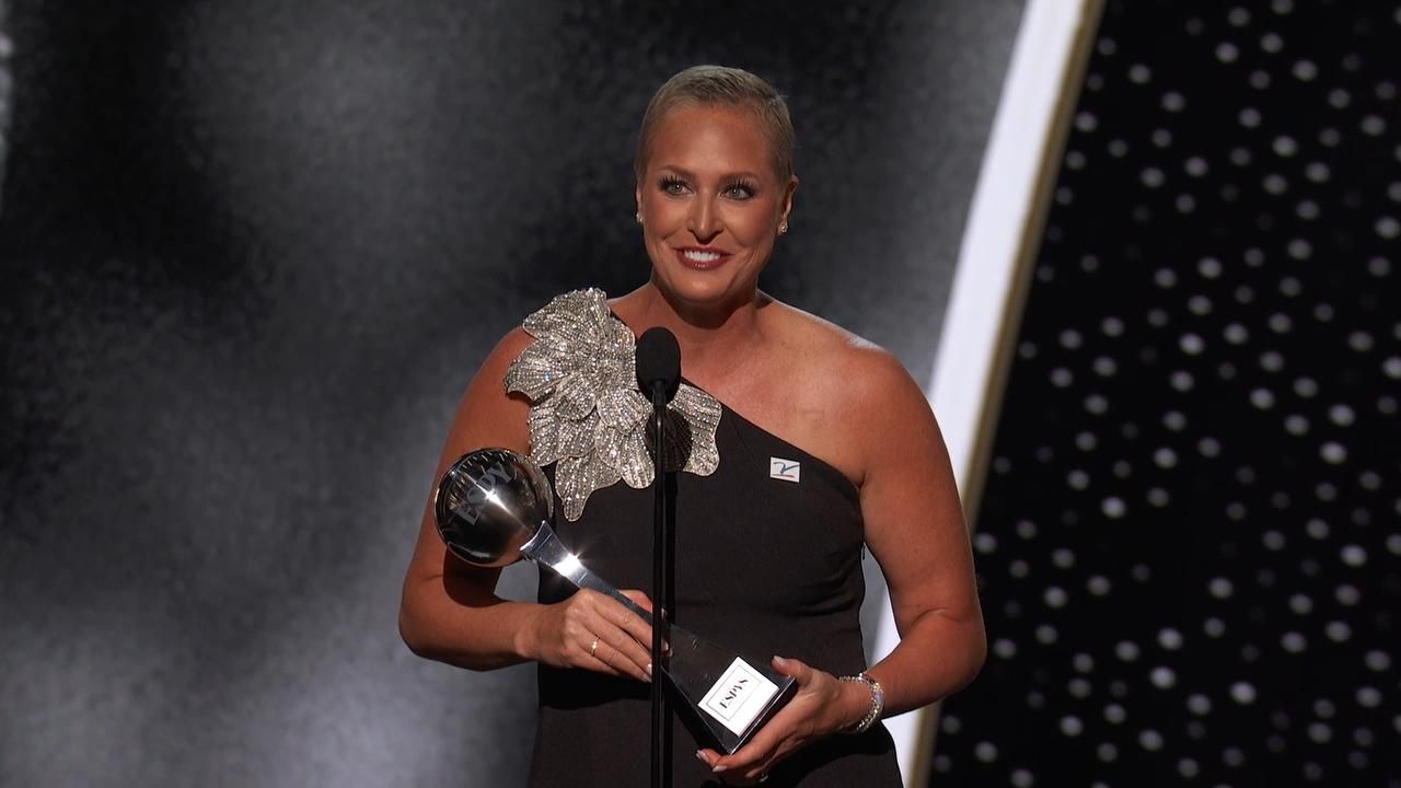 Dawn Staley accepts the Jimmy V Award for Perseverance at the ESPYS.