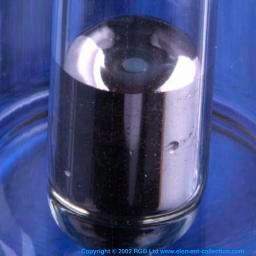 Mercury is the only metal element liquid at room temperature. It would be great fun to play with if it weren't so poisonous. This pool was shaped by carefully bending the black-painted foil it was resting on.
