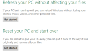 Refresh and Reset both revert Windows back to its system defaults. The difference between the two is the extent to which the system gets reset. “Refresh” preserves user settings, user data, and applications bought through the Windows store. Everything else is removed and restored to defaults. The process is quick, taking just a few minutes to complete.