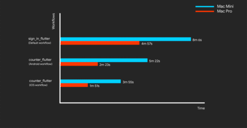 The Android Workflow was about 44% faster, and the iOS Workflow was about 47% faster on Mac Pro.