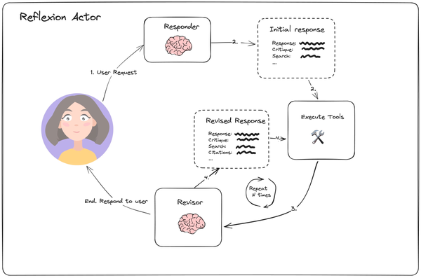 Reflexion by Shinn, et. al., is an architecture designed to learn through verbal feedback and self-reflection. Within reflexion, the actor agent explicitly critiques each response and grounds its criticism in external data. It is forced to generate citations and explicitly enumerate superfluous and missing aspects of the generated response. This makes the content of the reflections more constructive and better steers the generator in responding to the feedback.