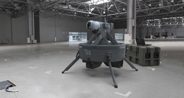 A Counter-UAV flying above Dome. The Counter-UAV after being hit by the Stinger missile.