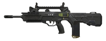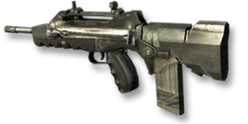 A 3 round burst bullpup assault rifle. A well placed burst can be extremely deadly at intermittent ranges.In-game description