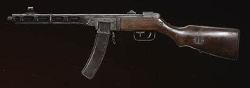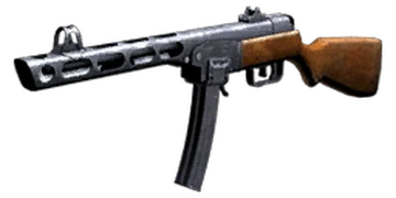 The PPSh submachine gun holds 71 rounds of Soviet pistol ammo and has a very high rate of fire. It's ineffective at long range and fires a relatively weak round, but its rate of fire makes for effective suppression and close-range combat.Manual description