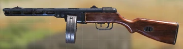 The PPSh submachine gun holds 71 rounds of Soviet pistol ammo and has a very high rate of fire. It's ineffective at long range and fires a relatively weak round, but its rate of fire makes for effective suppression and close-range combat.Call of Duty manual description.