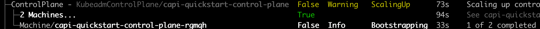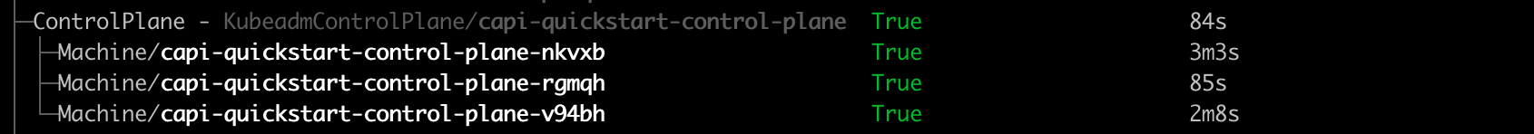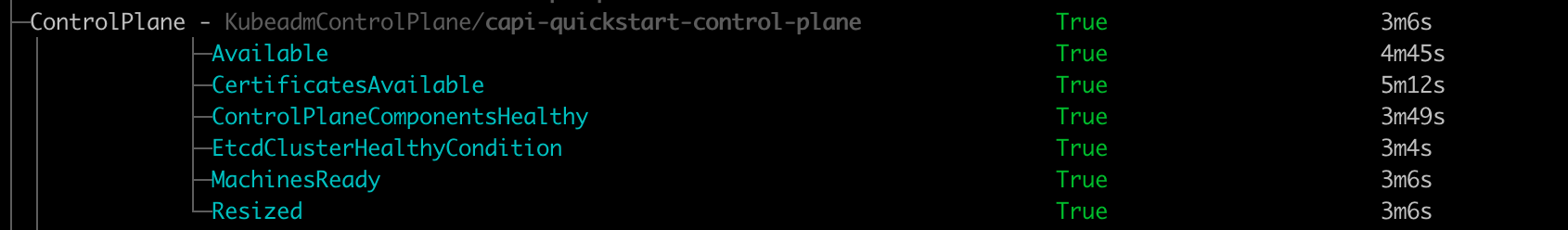 only the ready condition). e.g. with --show-conditions KubeadmControlPlane