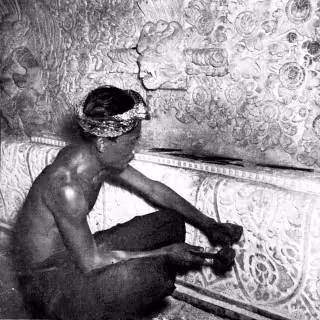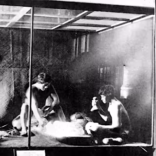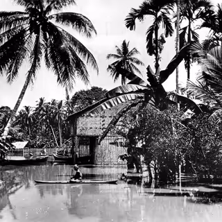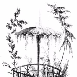 Wherein a sound drama for guttural choir and electronics is presented alongside live projected illustrations, and a childhood at a roofless Sundanese outhouse is depicted as its communal use is shown to fade.