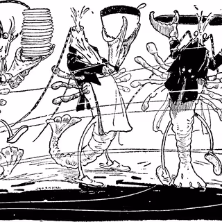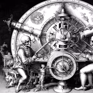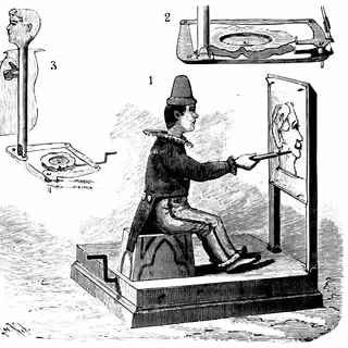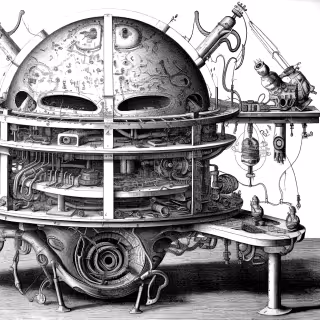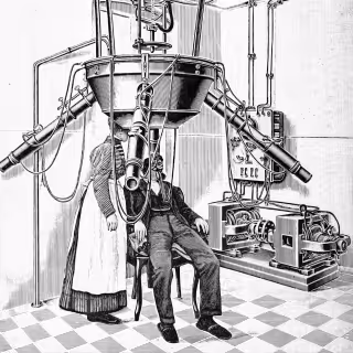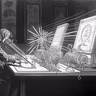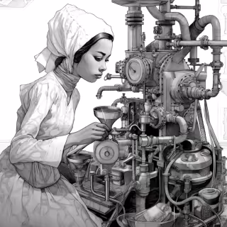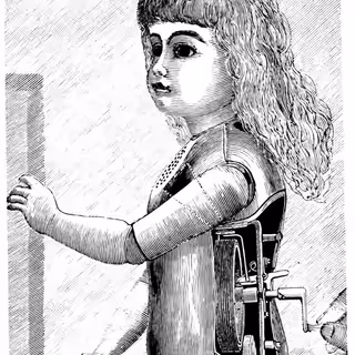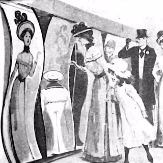 Wherein a host of towering automata in bustled Victorian gowns is encountered beneath a glass dome, their mechanical voices are offered as gramophone drones fill the bay and each machine is observed to curtsy inches away.