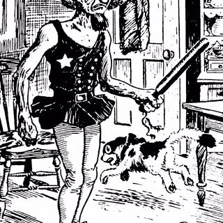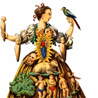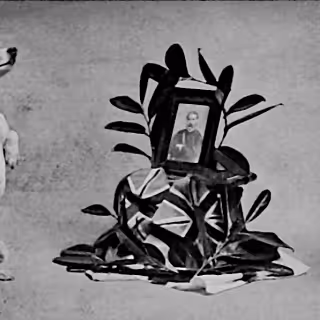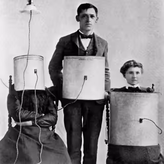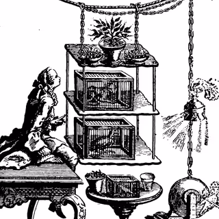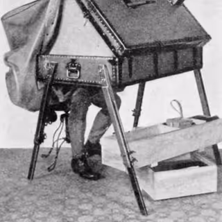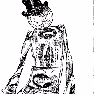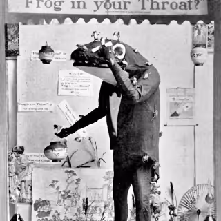 Wherein a camera-eyed automaton is concealed by a lace-trimmed bustle, static is hissed by gramophone horns, and passersby are engaged in ELIZA-like exchanges that culminate in a visitor draping it with a scarf.
