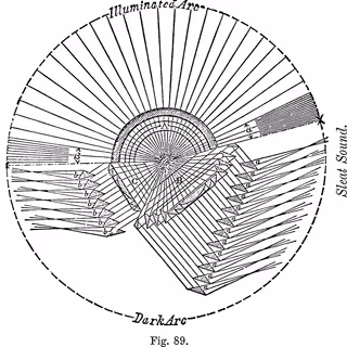 Wherein a post‑suburban shopfront at Camperdown Park is presented, and a solar lampshade wrapping an incandescent bulb is employed to power reclaimed circuit‑board assemblages that are made to emit intermittent squeals.