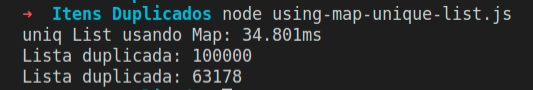 console.time('uniq List usando Map') // Pra contabilizar o tempo da operação