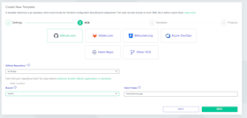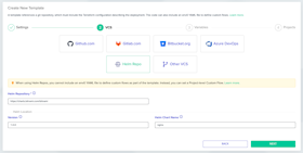 git select the appropriate VCS provider and provide the path to your Helm chart code: