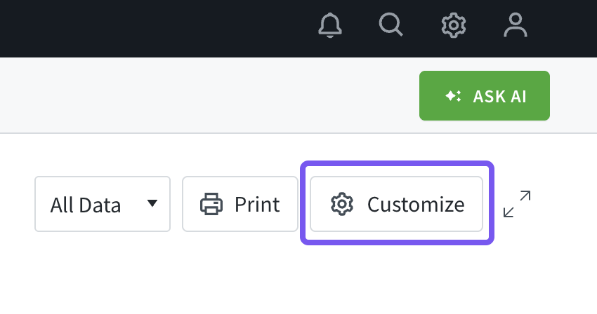 Settings for Overview and full-screen Overview are saved separately (full-screen Overview settings are saved in the URL). Changes in the Customize Overview panel won’t carry over to the full-screen version.