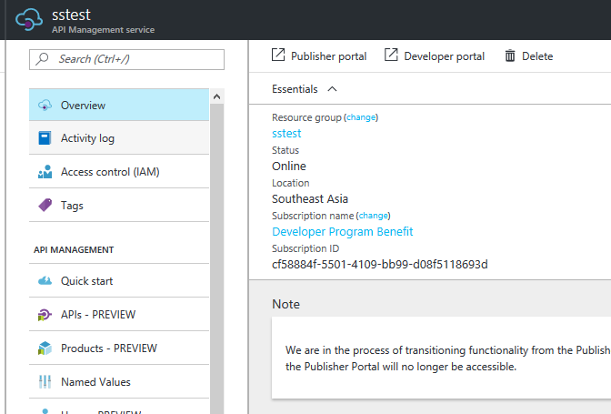 Wait while Management API will be activated. It can take more than forty minutes. When it ready click on created API management resource.