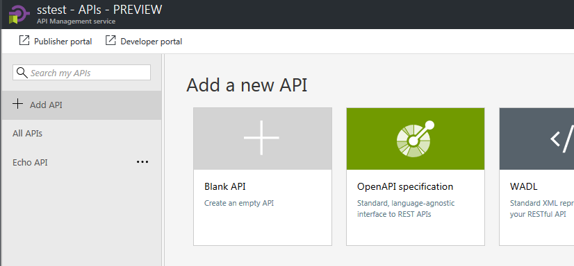 Choose OpenAPI specification in Add API section.