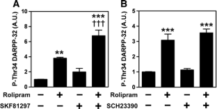 This research was supported by a Grant-in-Aid for Scientific Research from the Japan Society for the Promotion of Science (18300128 to A.N.) and grants from the US National Institutes of Health to G.L.S. (MH067488), J.A.B. (MH79710, MH083711, and DA016672), and P.G. and A.C.N. (MH 090963 and DA10044); the Michael Stern Parkinson's Research Foundation (to P.G.); and the Department of Defense (DOD/USAMRAA W81XWH-09-1-402 and W81XWH-10-1-0640 to P.G.). G.L.S. was supported by funds from Intra-Cellular Therapies Inc. G.L.S. receives additional support from the United States Army Medical Research and Materiel Command NETRP Program (DAMD 17-03-2-0019, W81XWH-05-1-0400, and W81XWH-06-C-0013 to Intra-Cellular Therapies Inc). The authors thank Yukako Terasaki, Keiko Fujisaki, Michiko Sakamoto, Minal Rana, Tiffany Tsui, and Tomonori Furukawa for excellent technical assistance.