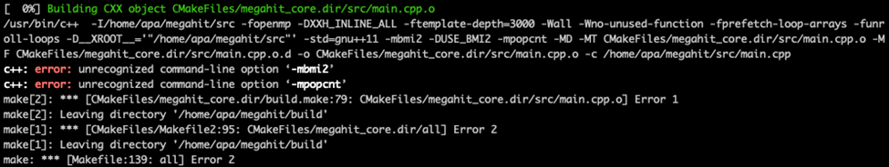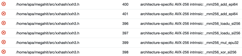 MEGAHIT is an NGS assembler tool available as a binary for x86_64. A customer wanted to run MEGAHIT on Arm64 as part of an architecture transition. But the compilation failed on Arm64 in the first file: