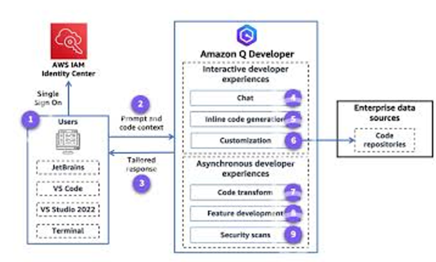 - It provides familiar security and access controls and can understand and respect your existing AWS IAM Identity Center governance identities, roles, and permissions to personalize its interactions.