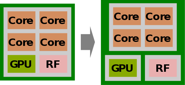 Chiplets refer to the independent constituents which make up a large chip built out of multiple smaller dies. Historically the need to go with multiple chips was driven by the reticle limit which dictated the maximum size of chip possible to be fabricated. Designs that exceeded the reticle limit had to be split up into smaller dies in order to be manufacturable. As process technologies continued to enable higher integration, multiple dies were merged into single, more complex integrated circuits. More recently, economics has resulted in a reversal of that trend. The desire to move to a chiplet-based design has been driven by the increasing cost of manufacturing devices on leading-edge process nodes. Due to the cost associated with leading-edge nodes, it became advantageous to, once again, de-integrate and break down a large die into smaller 'chiplets' in order to improve yield and binning.
