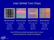 The table below shows the history of Intel's process scaling. Values were taken from various Intel documents including IDF presentations, ISSCC papers, and IEDM papers. Note that while a great deal of effort was put into ensuring the accuracy of the values, some numbers vary to a small degree between Intel's own documents and therefore discrepancies may exist. SRAM bitcell areas refer to a high-density 6T bitcell with the exception of the very first few processes where smaller cell designs were used. Additionally, the metal layer count is for the client dies (example consumer mobile & desktop); server models utilize considerably more layers. Finally, from the 45 nm node, Intel has switched to utilizing a high-κ material, therefore the oxide thickness shown refers to the equivalent oxide thickness instead.
