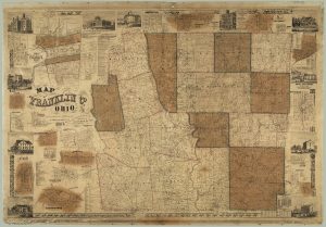 Our Engaging Columbus project, using funds from the Mellon Foundation, has scanned and georectified and georeferencing a series 1899, 1910, 1920) of detailed atlases for Columbus created for property and real estate research. These Baist’s Atlases of Columbus detail buildings, property boundaries, subdivisions, streets, public spaces, water features, and other urban phenomena, providing maps of property and the built environment of Columbus over 30 years in the early 20th century. Baist’s Atlases also have subtle social data: for example, ethnicity is suggested by the kind of places of worship, the economic landscape by the kinds of factories, and institutions (“Hospital for the Insane,” “Deaf and Dumb Asylum”). Sanborn Fire Insurance Maps (created around the same time to document building characteristics for determining insurance fees) are a complementary, late 19th and 20th century source of detailed urban maps.