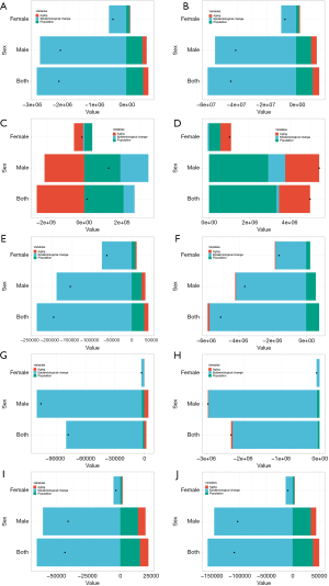 Breakdown analysis of TBL attributable to tobacco, 1990–2021