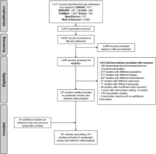 Hutton B, Salanti G, Caldwell DM, Chaimani A, Schmid CH, Cameron C, Ioannidis JP, Straus S, Thorlund K, Jansen JP, Mulrow C, Catalá-López F, Gøtzsche PC, Dickersin K, Boutron I, Altman DG, Moher D. The PRISMA extension statement for reporting of systematic reviews incorporating network meta-analyses of health care interventions: checklist and explanations. Ann Intern Med. 2015;162(11):777–84. https://doi.org/10.7326/m14-2385. (Epub 2015/06/02. PubMed PMID: 26030634).