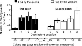 Pereboom JJM, Velthuis HHW, Duchateau MJ (2003) The organization of larval feeding in bumblebees (Hymenoptera, Apidae) and its significance to caste differentiation. Insect Soc 50:127–133