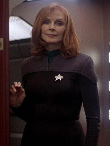 Furthermore, Crusher is one of the few TNG main characters to not be seen in the DS9 style of uniforms, along with Deanna Troi.